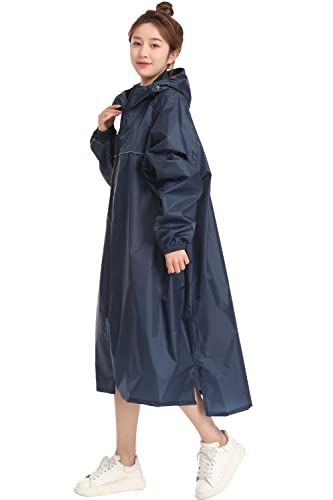 通学や自転車に最適な男女兼用レインコート 蒸れにくく快適な着心地で反射材付きの安全設計ロング丈ポンチョ