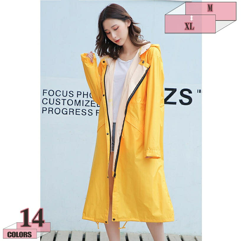 自転車とリュック対応のロング丈レインコート。防水性に優れ、通勤・通学からアウトドアまで幅広く使用可能。