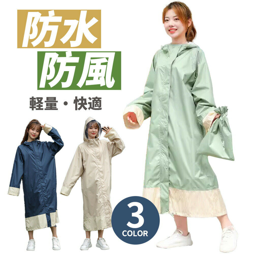 レインコート レディース ロング フード付き 通勤 レインポンチョ 雨具 雨合羽 自転車 リュック対応 カジュアル おしゃれ ファション