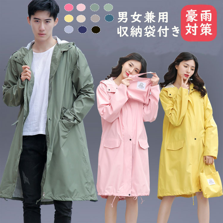 レインコート レディース 男女兼用 収納袋付き 撥水 防水 フード バイク 快適 レインポンチョ おしゃれ カジュアル リュック対応 防? 豪雨 梅雨対策 バイク 通勤通学 キャンプ 釣り 登山