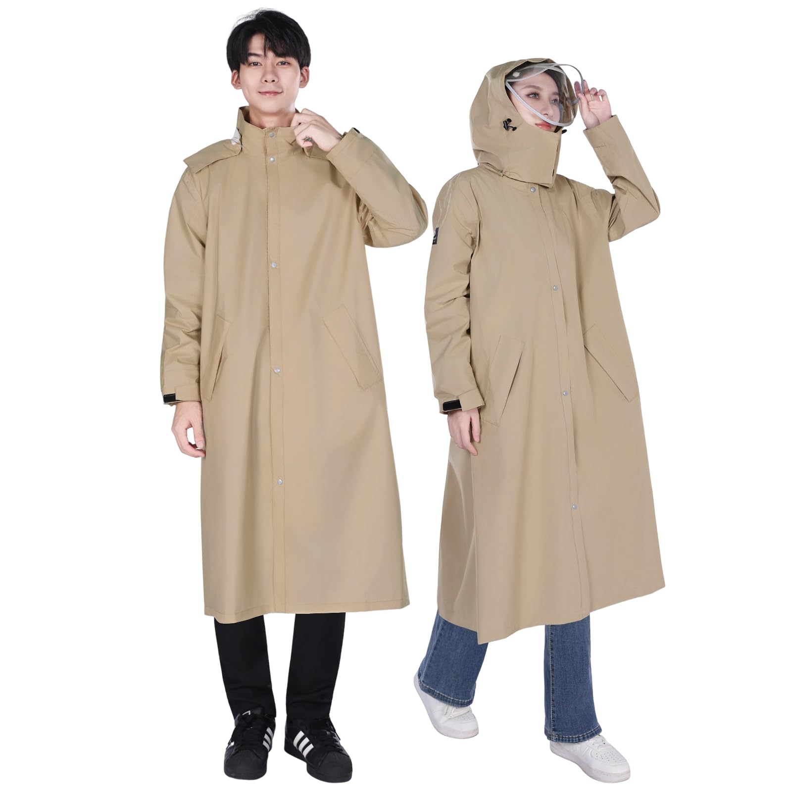 ロングタイプ レインコート 自転車 取外し可能なフェイスシールド ポンチョ レインウェア リュック対応 透明バイザー ひざ下 濡れない 自転車 通学 リュック バイク用 男女兼用