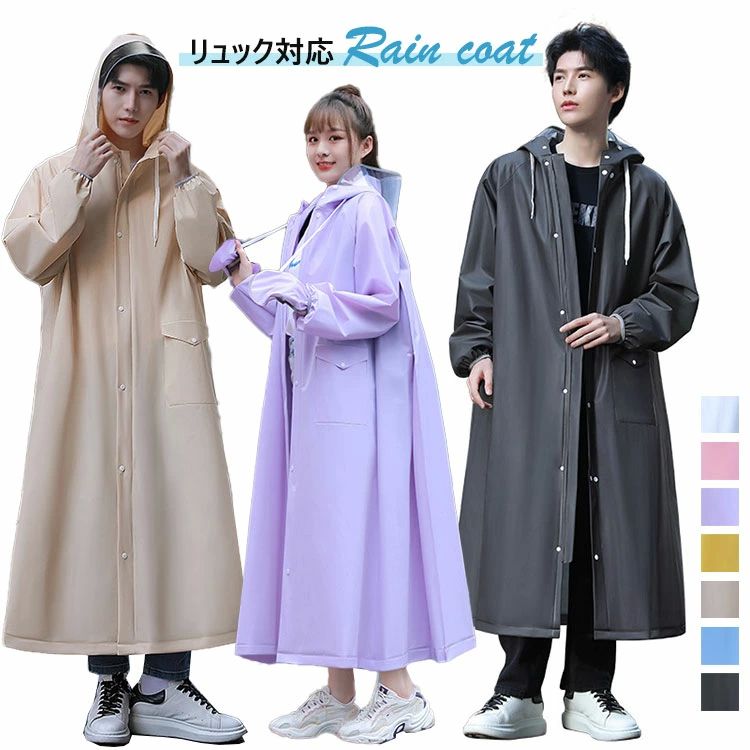 リュックを背負ったまま着れる ロング丈 かわいい 自転車対応 カラフル レインウェア 雨具 雨 シンプル ユニセックス 男性 女性 梅雨対策 クリア視野 ポケット付 キャンプ 犬の散歩