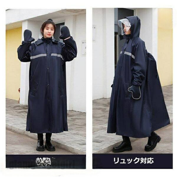 レインコート レディース メンズ 男女兼用 リュック対応 長め レインポンチョ通学用 自転車通学 撥水