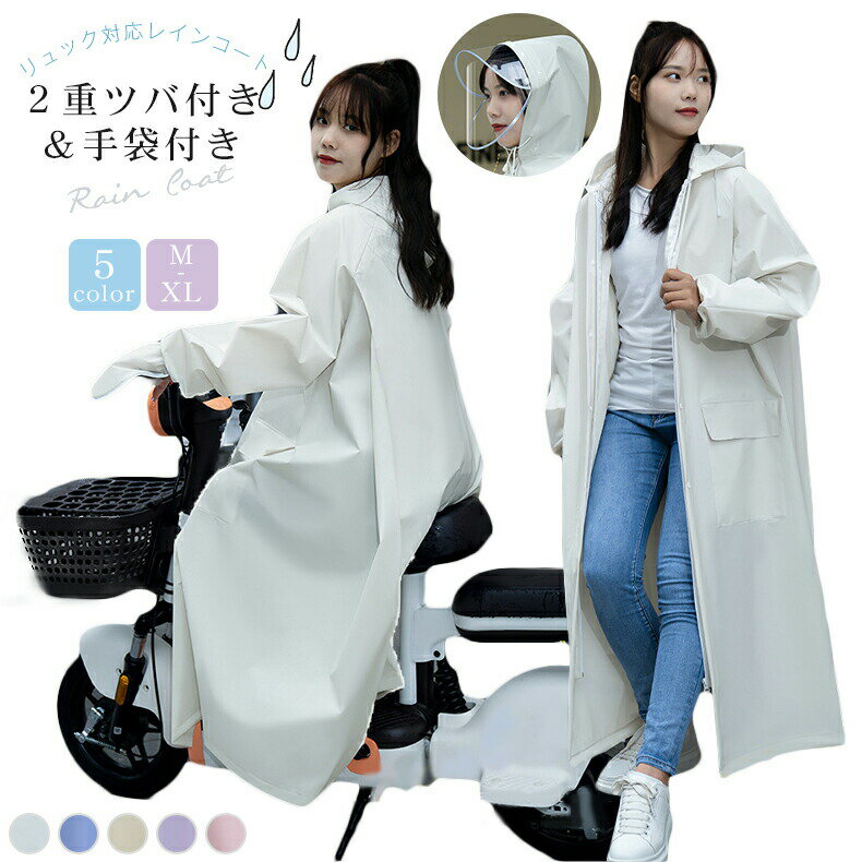 レインコート レディース 二重ツバ付き 自転車 レインポンチョ 男女兼用 雨具 雨合羽 リュック対応 魔法レインコート 男女兼用 通学通勤 防塵防雪 防風防水 速乾