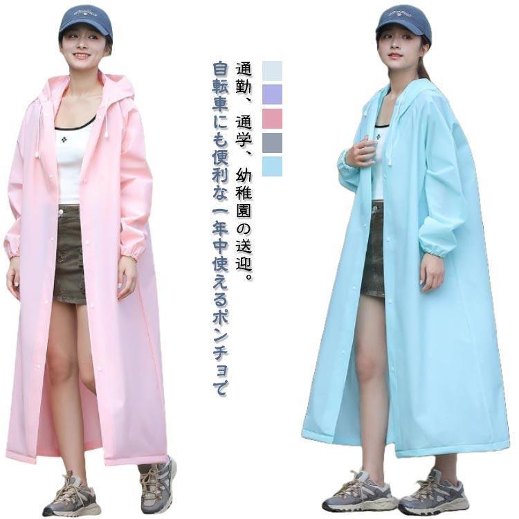 レディース レインコート おしゃれ ママ 送迎 レインウェア ロング丈 かわいい 雨具 自転車 レインコートメンズ ロング かっぱ 前開き レインポンチョ 軽量 リュックにも対応