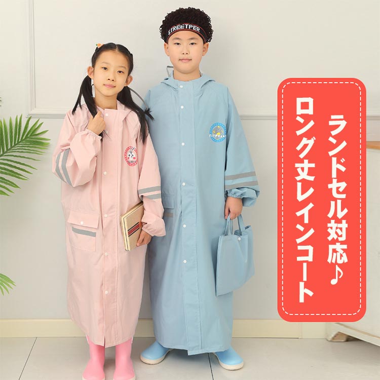 収納バッグ付き ロング丈 レインコート キッズ 男女兼用 通学 10