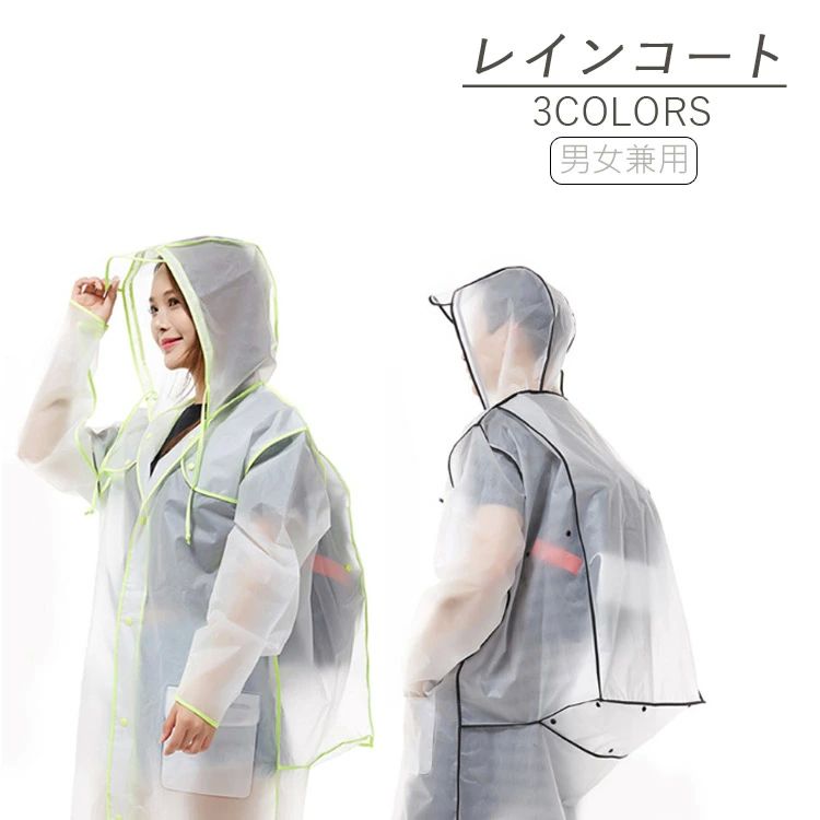 リュックを背負ったまま着れる ロング丈 かわいい 自転車対応 カラフル レインウェア 雨具 雨 シンプル ユニセックス 男性 女性 梅雨対策 クリア視野 ポケット付 キャンプ 犬の散歩