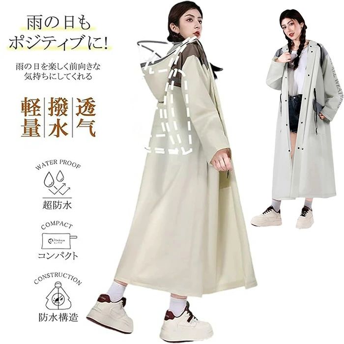 おしゃれを楽しみながら、夏の雨も完璧に防ぐ多機能レインコート!様々なシーンを想定したデザインで、街歩きはもちろん、自転車などの乗車時も動きを妨げることなく、快適に使用できる!