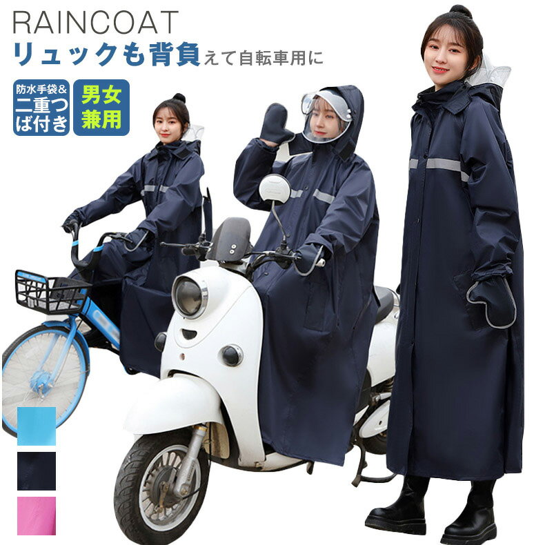 おしゃれ 雨具 自転車 バイク 軽量 通学 通勤 透明ひさし 入学 合羽 男女兼用 ジッパー レインポンチョ レインウェア 手袋と二重ツバ付き