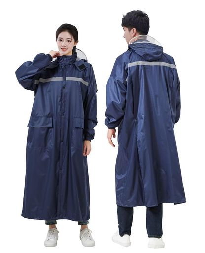 リュックを背負ったまま着用する事が可能な裾長のレインコートです。