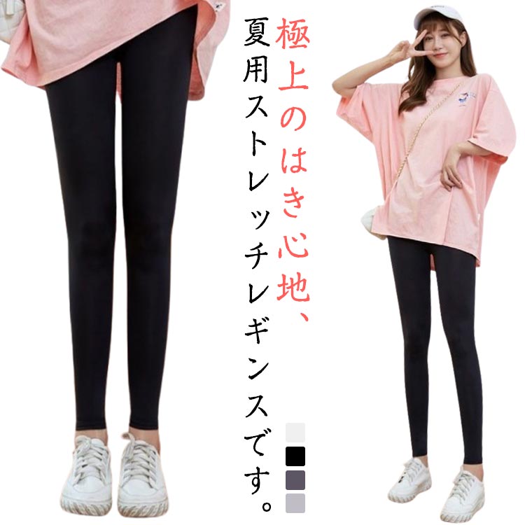 レギンス 夏用 涼しい スパッツ レディース ボトムス 伸縮性 ストレッチ 接触冷感 ウエストゴム ・・・
