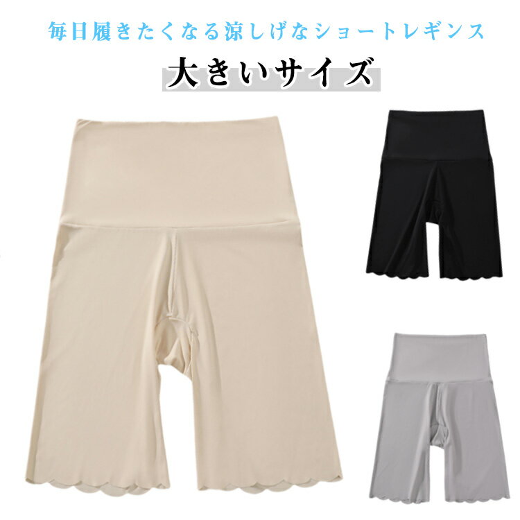 サラッと素材 レディース 無地 インナーパンツ ガードル 夏用 ショートレギンス アンダースパッツ ・・・