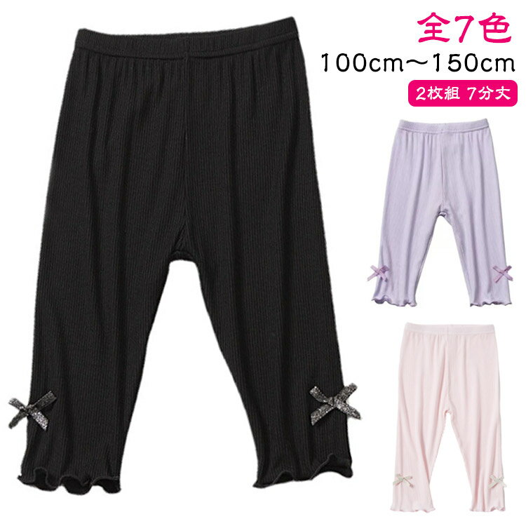 レギンス スパッツ 子ども服 【2枚組】キッズ 夏 ストレッチ 子ども服 全7色 女の子 伸縮性 7・・・