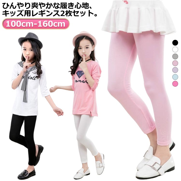2枚セット 女の子 レギンス ジュニア 夏用 秋用 薄手 スパッツ 子供 紫外線対策 ラッシュガード ボトムス 子ども服 かわいい 伸縮 ストレッチパンツ
