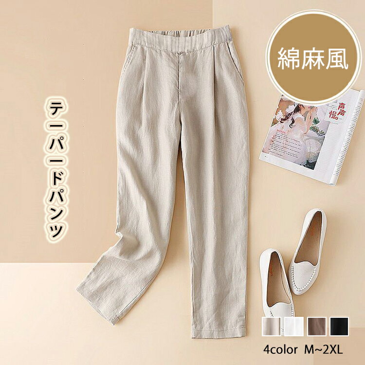 パンツ レディース リネンパンツ 綿麻 ワイドパンツ イージーパンツ テーパードパンツ ズボン 9分・・・
