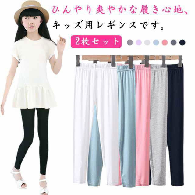 レギンス 2枚セット シンプル 接触冷感 吸汗速乾 薄手 ストレッチ ひんやり 子供服 キッズ 春 ・・・