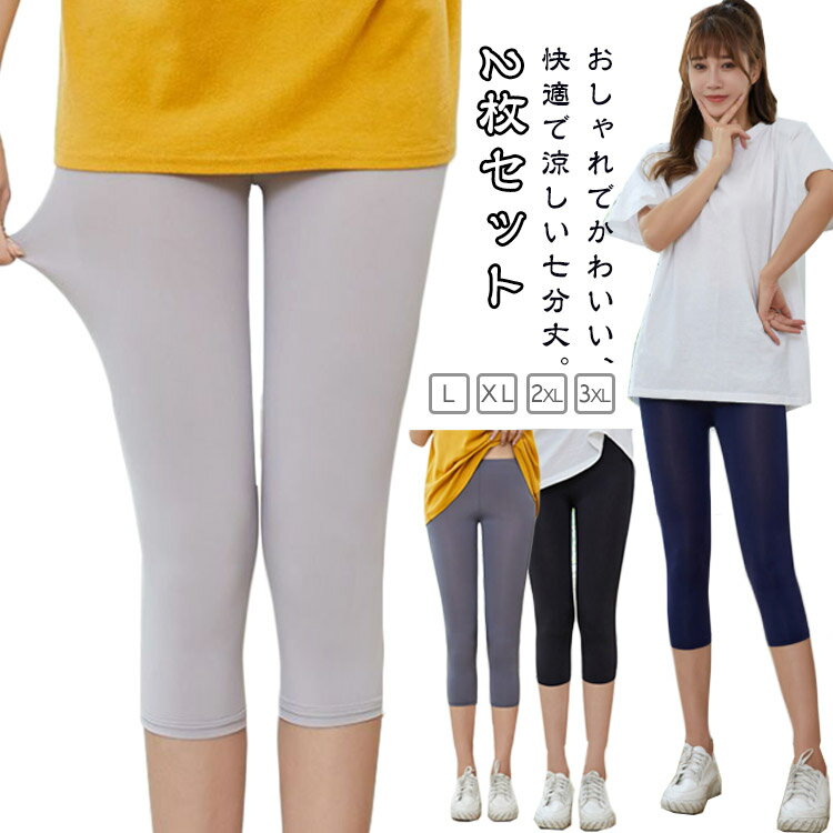 【2枚セット】 レギンス レディース 夏 夏用 薄手 涼しい 5分丈 7分丈 UVカット 大きいサイ・・・