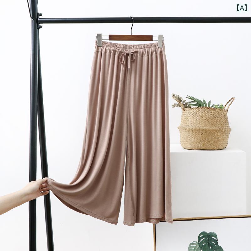 レディース 七分丈 春夏 春夏 涼しい きれいめ 夏用 大人ワイドパンツ 無地 ウエストゴム フレア・・・