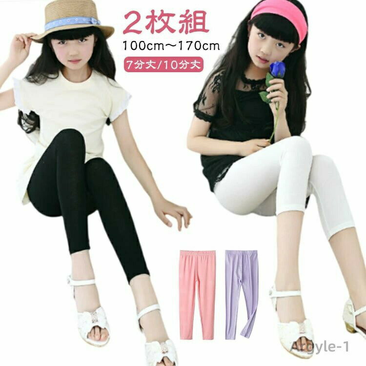 レギンス スパッツ 子ども服 【2枚組】キッズ 夏 ストレッチ 子ども服 全7色 女の子 伸縮性 7・・・