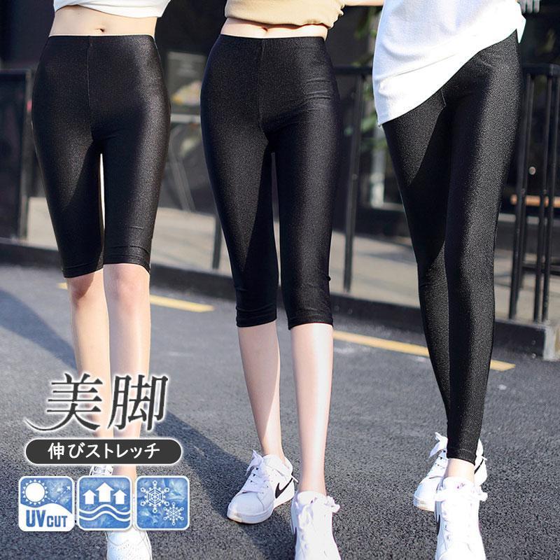 無地 UVカット 吸汗速乾 夏用 インナー 日焼け防止 涼感 ボトムス レギンス 薄手 接触冷感 涼・・・