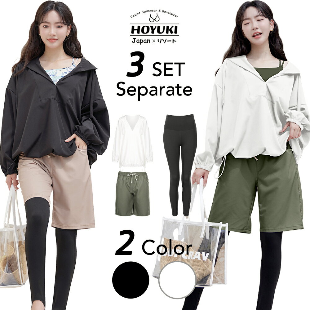 ≪3点セット≫ラッシュガード ショートパンツ レギンス レディース フード付き 夏用 長袖 涼しい 体型カバー