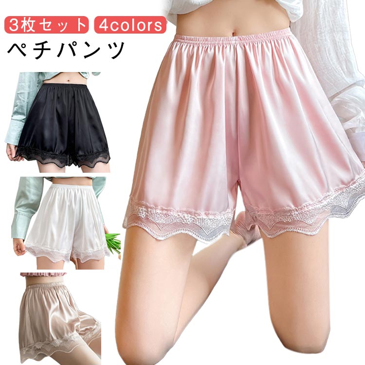 3枚セットインナーパンツペチパンツペチコートレディースレースシンプルパンツペチパンショート涼しい快適・・・