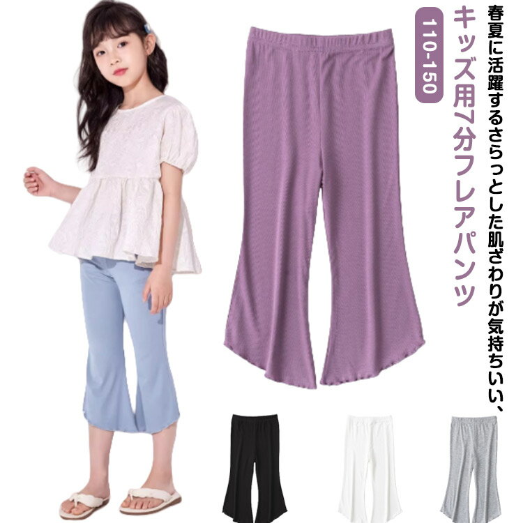 春夏 パンツ 無地 フレアパンツ ロングパンツ 薄手 7分丈 レギンス ボトムス 女の子 涼しい ス・・・