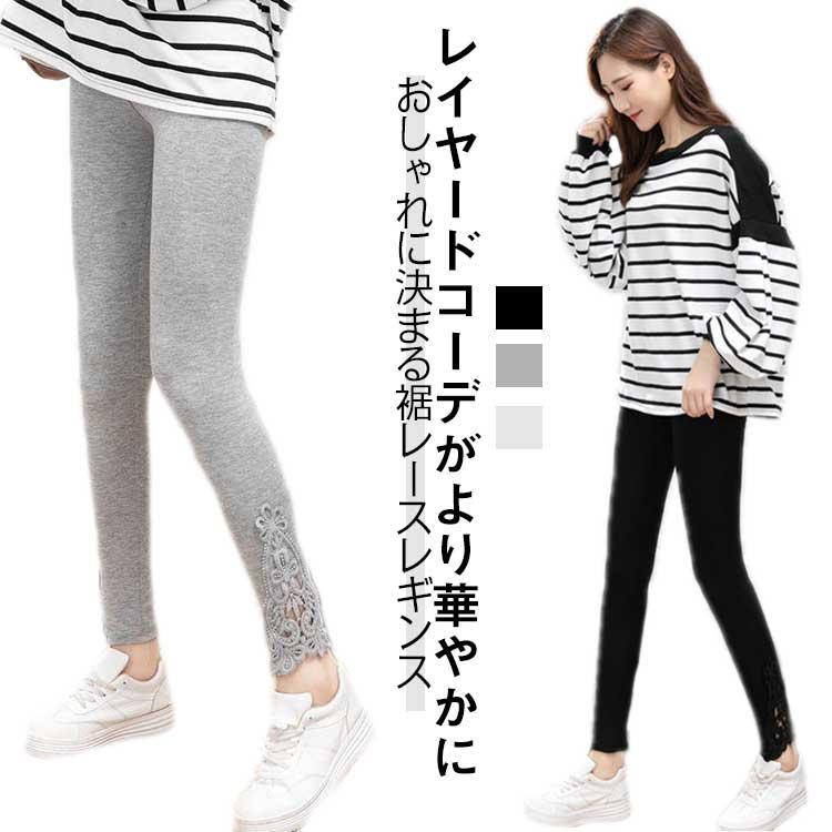 裾レース レディース レギンス レギパン 薄手 夏用 2枚セット レース 夏 レギンスパンツ レギン・・・