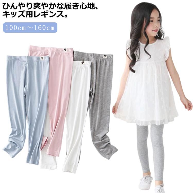 キッズ レギンス ジュニア 夏用 薄手 涼しい スパッツ 接触冷感 シンプル 春 夏 UVカット ボトムス 女の子 ガールズ 子供服 かわいい ダンス 新体操