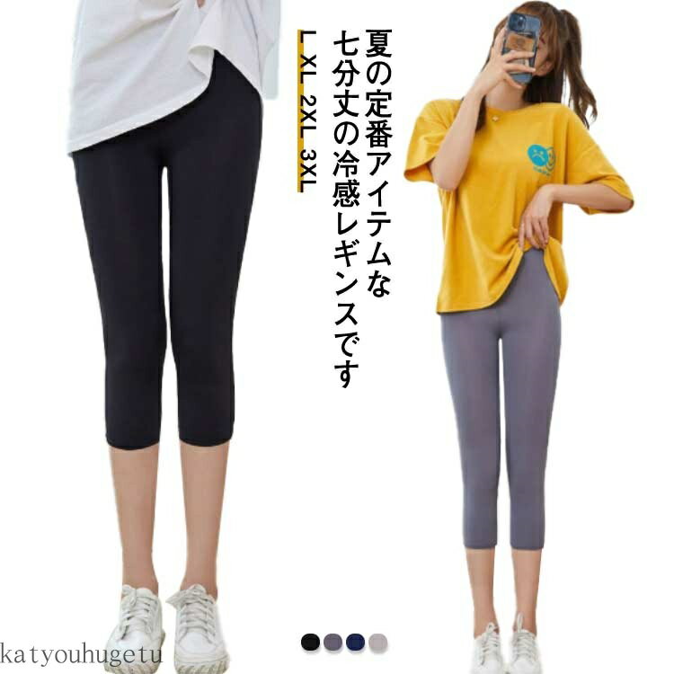 【送料無料】レギンス 夏用 涼しい レディース 薄手 7分丈 2点セット 大きいサイズ アイスシルク・・・
