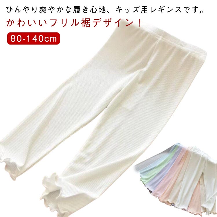 送料無料レギンスキッズフリル夏カラーレギンススパッツ女の子接触冷感涼感レギンスジュニア子供服ストレッチ蚊よけ薄手ボトムス子ども服かわいい