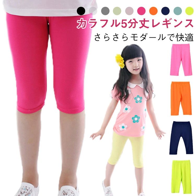 キッズ レギンス 夏用 モダール素材 女の子 五分丈レギンス カラ