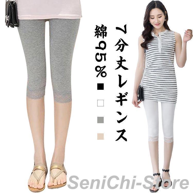 レギンス レディース コットン 夏 夏用 薄手 涼しい 7分丈 大きいサイズ スパッツ レース イン・・・