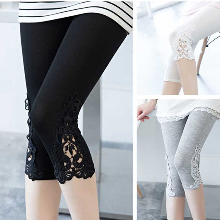 レギンス 薄手 涼しい レギパン シンプル 裾レース 2枚セット 夏用 レディース 7分丈パンツ レ・・・