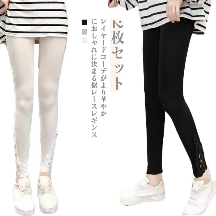 レギンス レディース 夏 夏用 薄手 涼しい 2枚セット レース 裾レース レギンスパンツ レギパン・・・