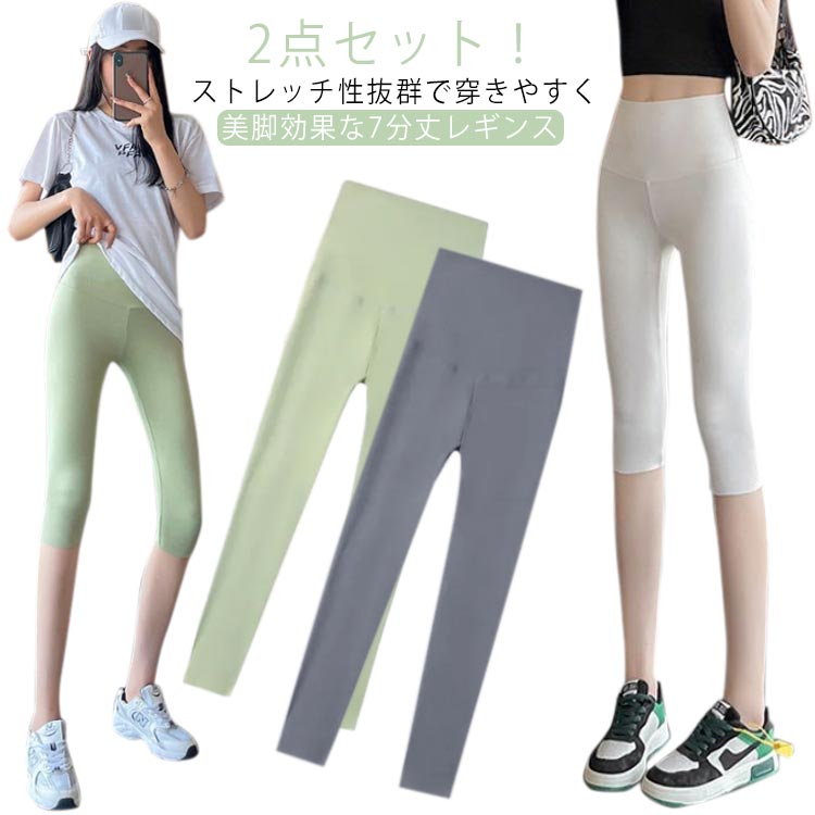 7分丈 ヨガウェア 薄手 クロップドパンツ レギパン 夏 ハーフレギンス ヨガレギンス 美脚 涼しい・・・