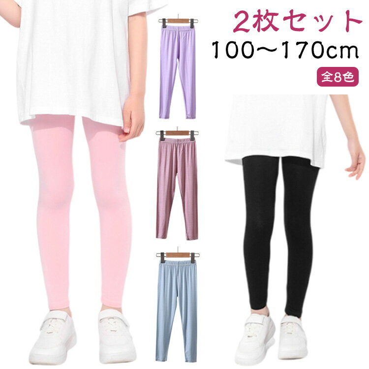 2枚セット 女の子 レギンス ジュニア 夏用 秋用 薄手 スパッツ 子供 紫外線対策 ラッシュガード ボトムス 子ども服 かわいい 伸縮 ストレッチパンツ