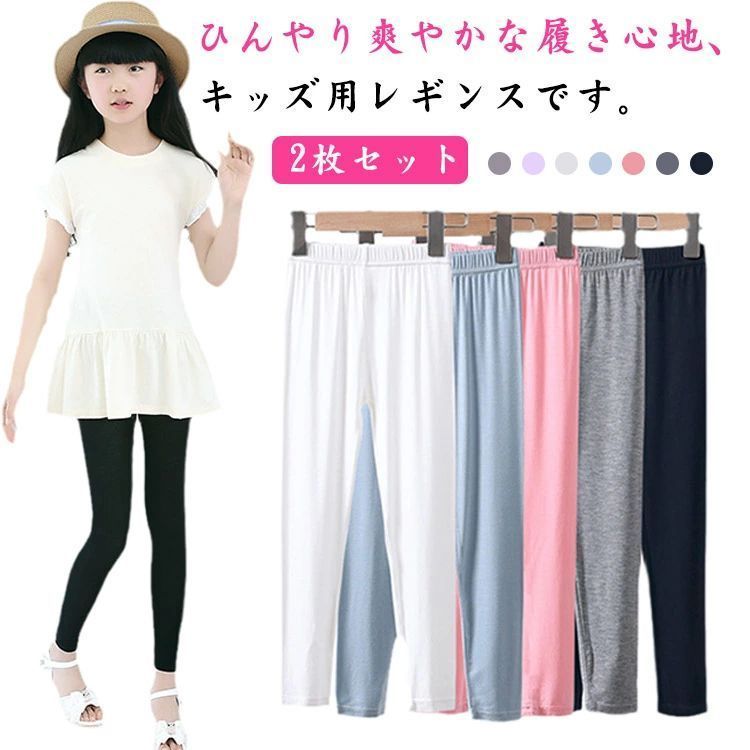 キッズ レギンス ジュニア 7分丈 夏用 薄手 涼しい スパッツ 夏 UVカット 無地 インナー 女の子 パンツ ズボン ガールズ 子供服