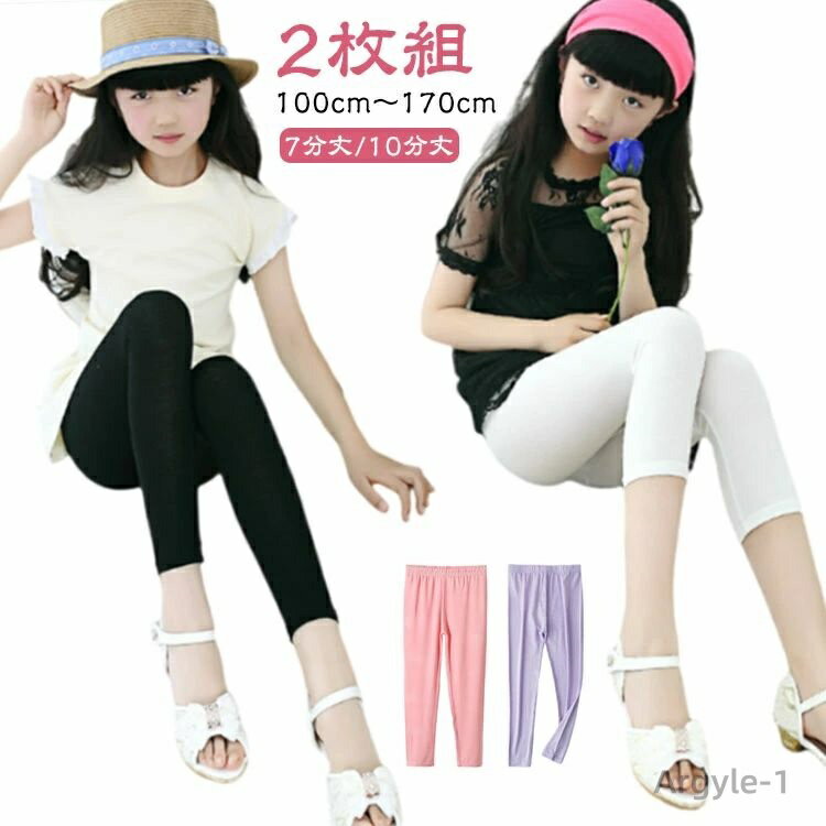 【送料無料】夏 夏 女の子 7分丈/10分丈 無地 キッズ スパッツ カラバリ 2枚セット!レギンス・・・