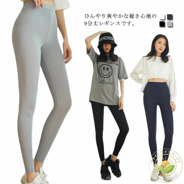 レギンス レギンスパンツ 9分丈 ハイウエスト 夏用 夏 涼しい パンツ レディース ひんやり 涼しい 冷感 シルクタッチ シンプル 無地 ストレッチ