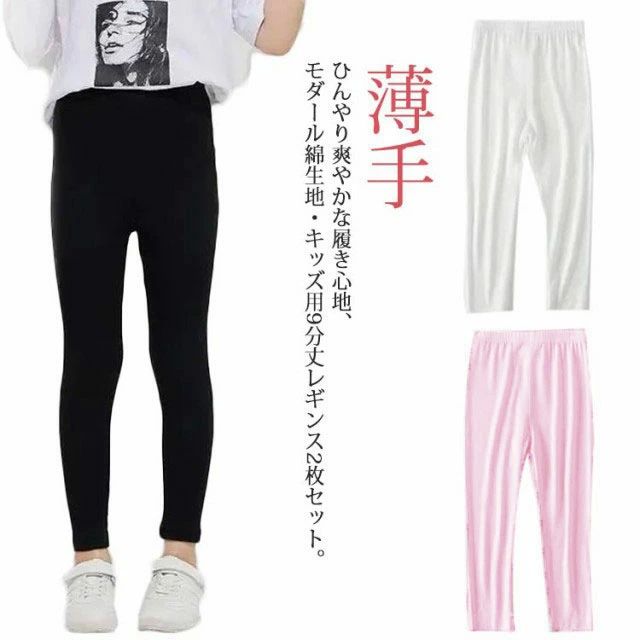 キッズ レギンス 2枚セット 接触冷感 吸汗速乾 薄手 ひんやり 涼しい スパッツ シンプル 春 夏用 涼感 UVカット インナー 無地 ボトムス 女の子 ジュニア 子供服