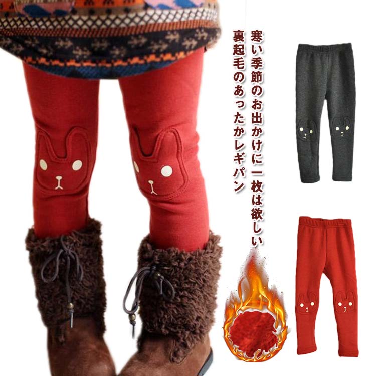 100〜140 裏起毛 レギンス ストレッチ 暖かい 冷え対策 ウサギ
