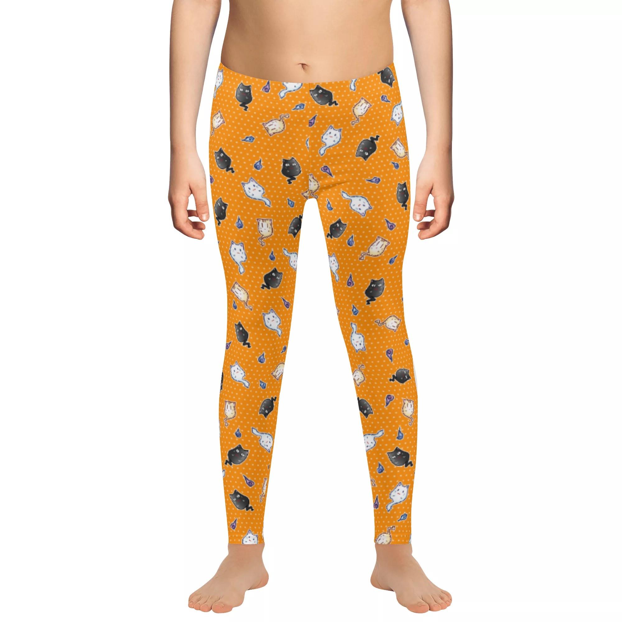 ねこゆうれいオレンジ総柄(キッズレギンス 10分丈) キッズレギンス 10分丈 キッズ 全て 動物 ・・・
