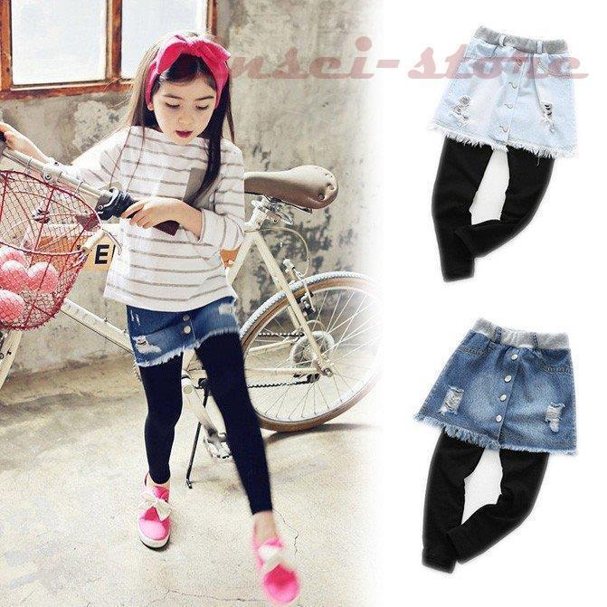 子供レギンス ストレッチ 10分丈スカッツ スカート付きレギンス デニムスカート パンツ 子供服 女・・・