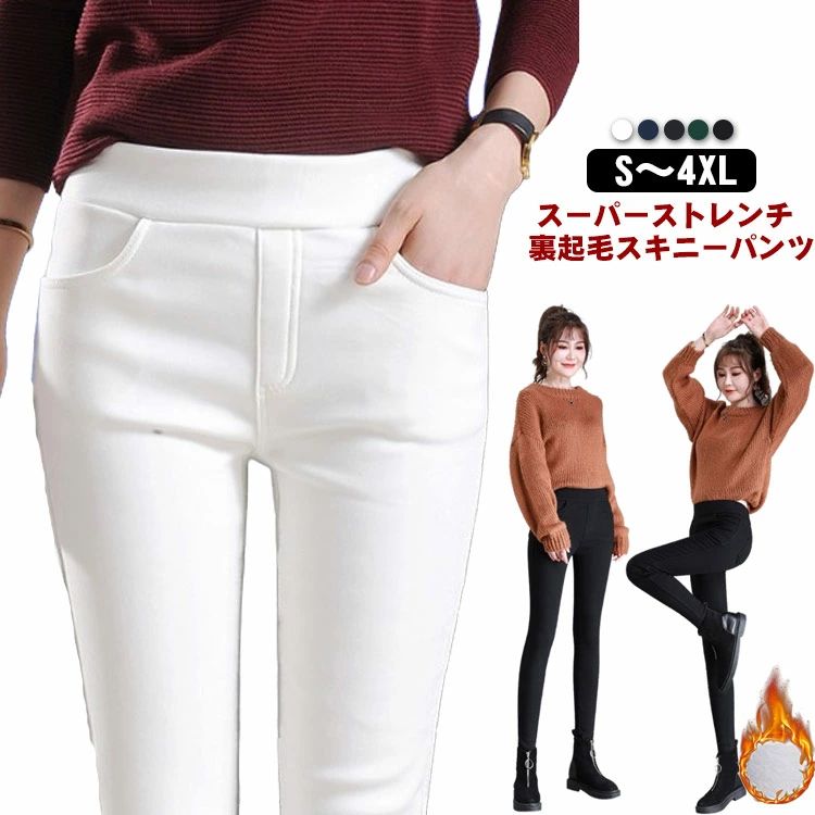 デニムスキニー スーパーストレンチ 裏起毛 ハイウエスト ストレ