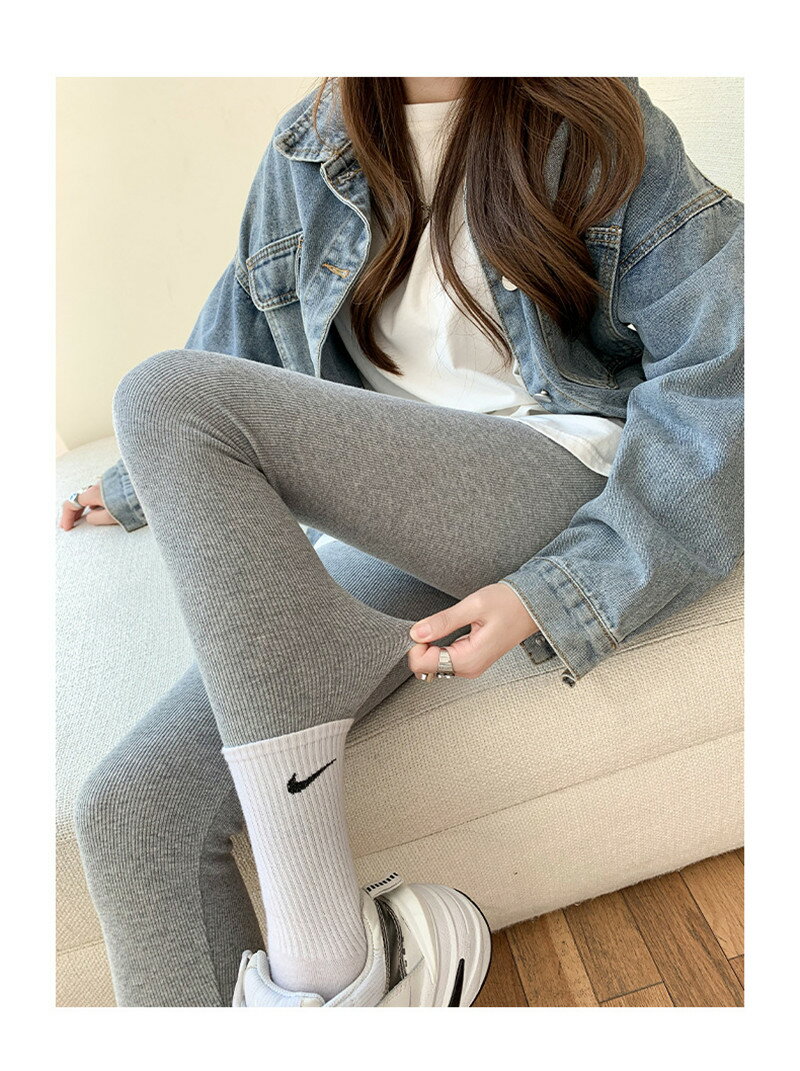 ブラック グレー オフホワイト ベージュ リブニット レギンスパ
