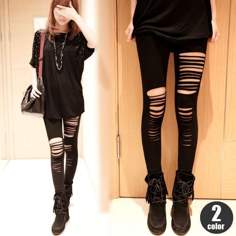 レギンス レギパン 10分丈 レディース 女性用 ダメージ加工 穴あき 穴開き ボトムス パンツ ス・・・
