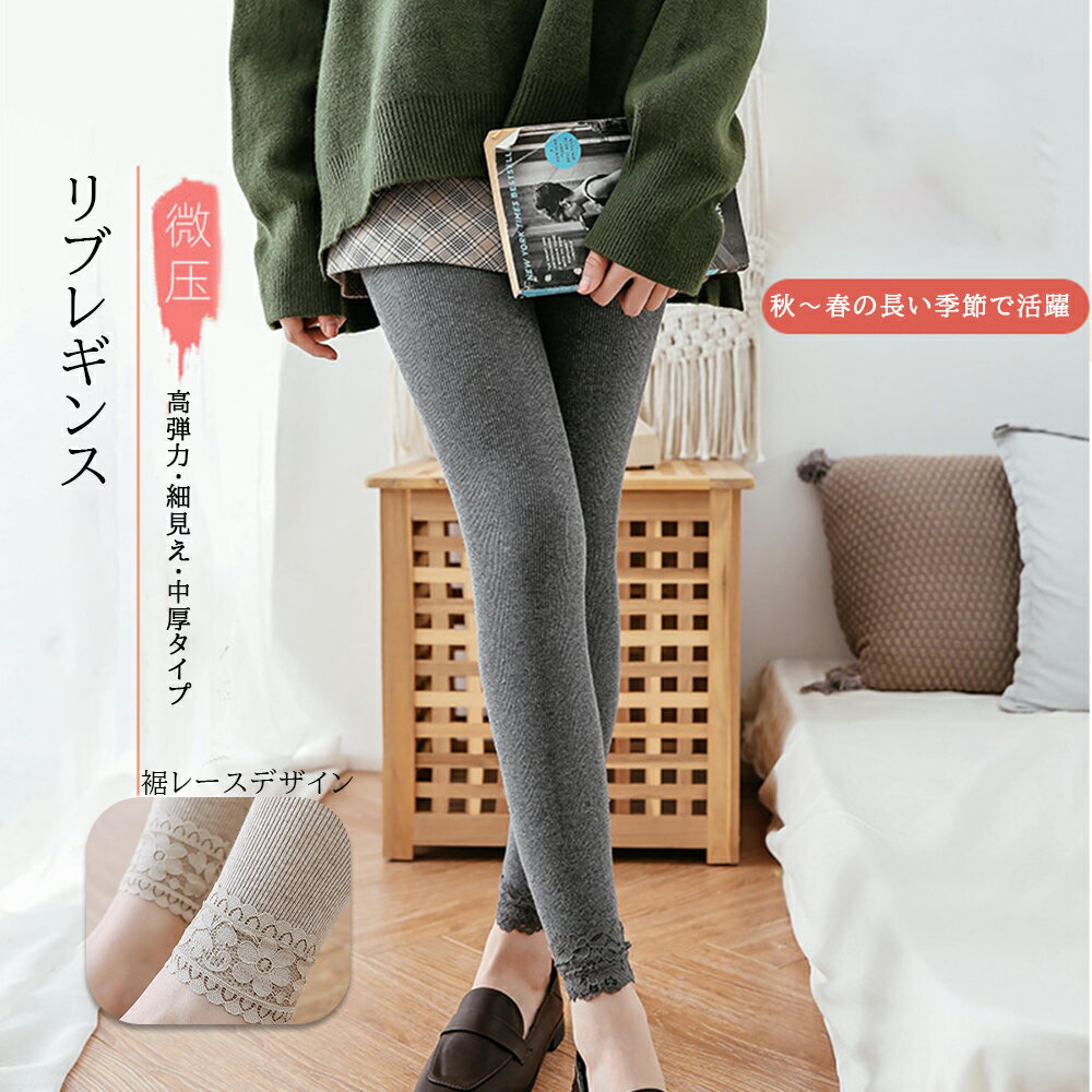 ★今ならお得!全品10%OFF★リブ ニットレギンス スパッツ 下着 インナー パンツ リブニット ・・・