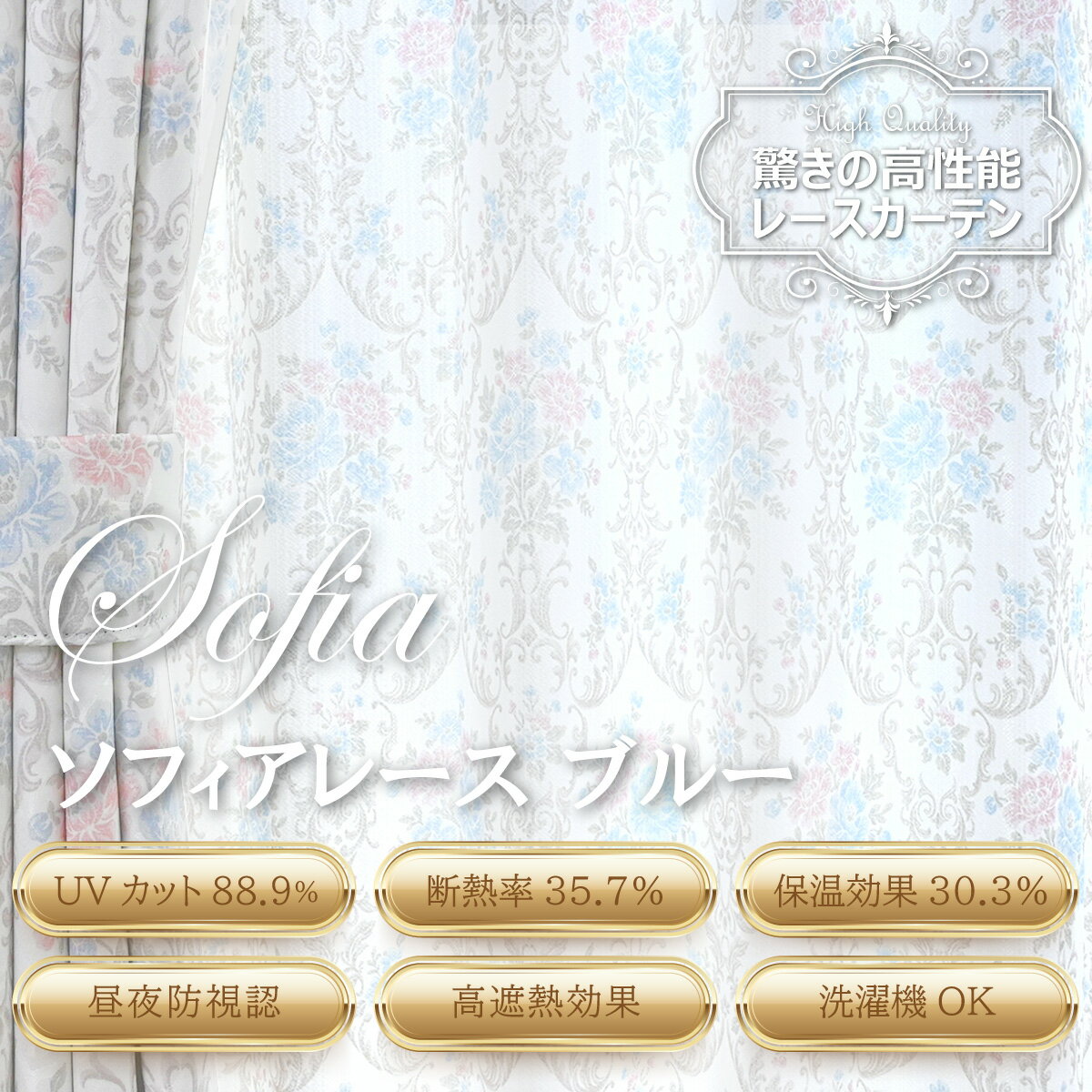 【満天カーテン プレミアム レースカーテン ソフィア ブルー】 レースカーテン 昼も夜も透けない プ・・・