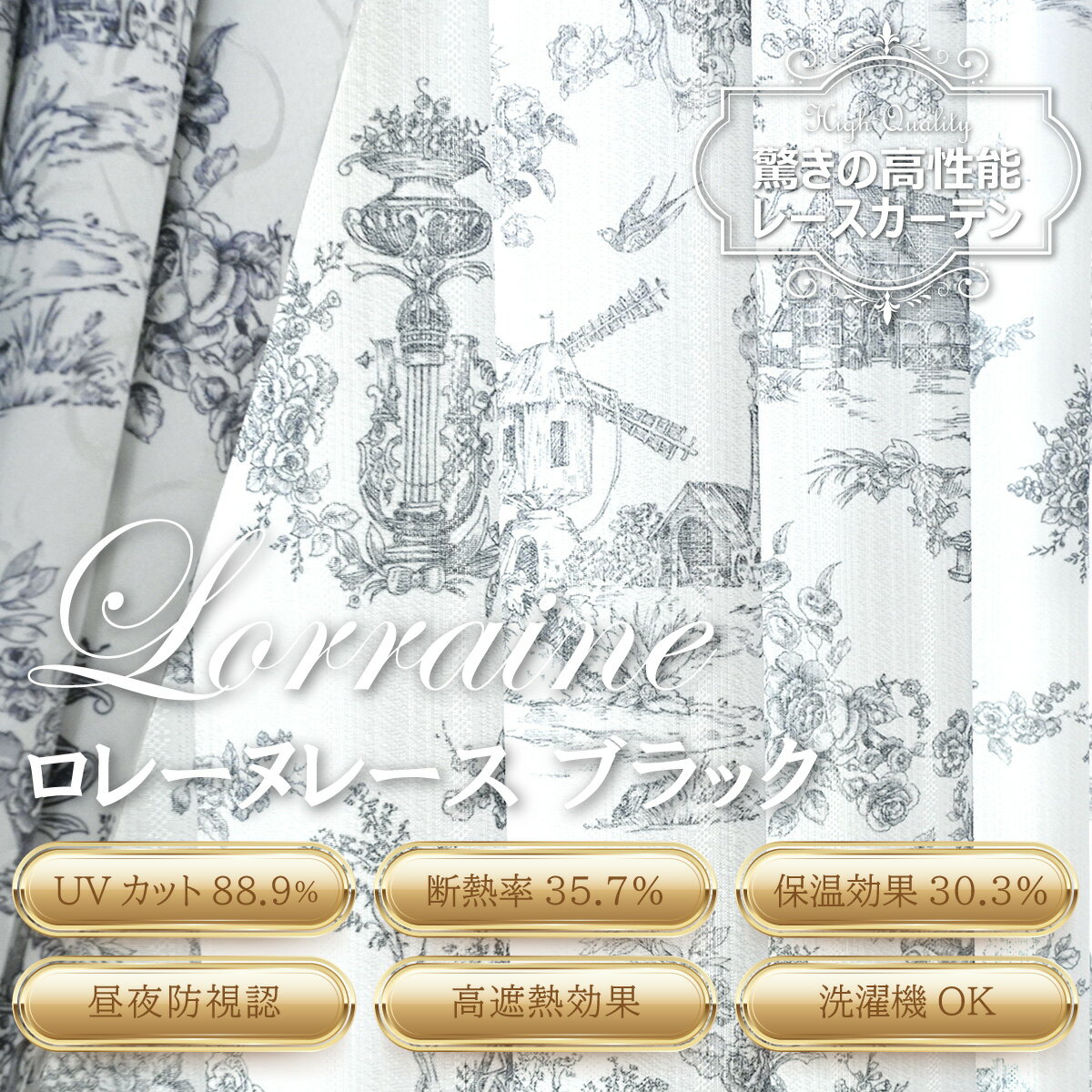 【満天カーテン プレミアム レースカーテン ロレーヌ ブラック】 レースカーテン 昼も夜も透けない ・・・
